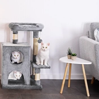 - KOMFORTZONE FÜR IHRE KATZE. Dieser Katzenkratzbaum aus weichem Plüsch und umfassenden Beschäftigungsmöglichkeiten schafft die ideale Umgebung für jede Samtpfote. Der Kratzturm garantiert artgerechtes Spielen, Ausruhen und Verstecken. Die Abwechslung zählt!