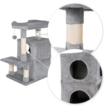 - IDEALES SPIEL- UND RUHEPARADIES. Die vortreffliche Ausstattung dieses Katzenbaumes mit 2 Höhlen und einem Plüschball mit Glocke befriedigt den Spieltrieb Ihrer Katze. Das gemütliche Liegebett unterstützt zusätzlich die benötigten Ruhephasen und auch das beliebte Beobachten kommt nicht zu kurz. Die perfekte Balance zwischen Spielspaß und Rückzugsmöglichkeiten.