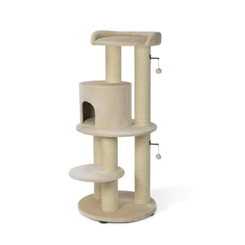 Dank der bequemen und extra großen Liegeflächen mit hohem Liegekomfort haben deine Katzen genügend Platz zum Ausruhen. Die sechs dicken Kratzsäulen (Ø 15cm) bieten genügend Fläche für einen unbegrenzten Kratzspaß. Der Kratzbaum ist für kleine bis große Katzen, sowie Haushalte mit mehreren Katzen geeignet. Dank der zwei Plüschbälle wird auch der Spieltrieb deiner Katze befriedigt. Die extra dicke, stabile Bodenplatte mit Anti-Rutsch-Füßen sorgt für einen stabilen Stand.