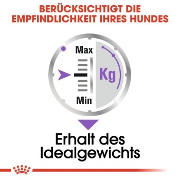 Außerdem enthält das Futter Royal Canin® Sterilised Mousse einen moderaten Fettgehalt und eine optimale Kombination aus Nahrungsfasern, die Ihrem Hund dabei helfen, sein Idealgewicht zu halten und satt zu werden.