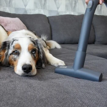 Die mit 180 mm extra-breite Tierhaar Polsterdüse saugt mühelos und besonders effektiv Tierhaare von Polstermöbeln, Katzenbäumen und Hundekörben – eine echte Erleichterung für jeden Tierhaushalt.