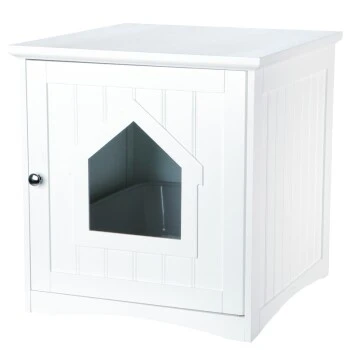 Das Häuschen aus hochwertigen, lackierten MDF-Platten passt ideal für Standardtoiletten ohne Rand. Alternativ kann das WC-Häuschen auch als Schlafhaus genutzt werden.